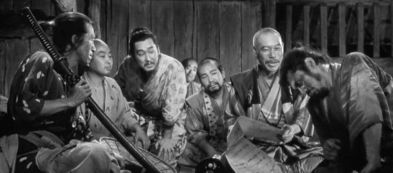 Siedmiu samurajów" – ponadtrzygodzinna opowieść o wiosce, która, aby chronić się przed regularnymi najazdami bezpańskich wojowników, wynajmuje tytułowych bohaterów, którzy szkolą mieszkańców i przygotowują ich do ostatecznego starcia z siłami agresorów. Westernowa z ducha struktura jest czytelna na pierwszy rzut oka, dlatego nieszczególnie zaskakuje, że film
