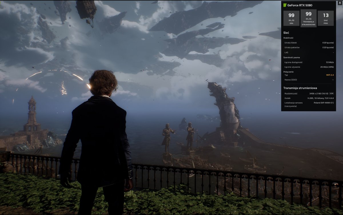 Clair Obscur: Expedition 33" nie byłem w stanie wyczuć różnicy między lokalną instalacją a streamingiem; co więcej, dzięki NVIDIA Reflex i klatkażowi 360 Hz niektóre gry działały płynniej niż na moim domowym pececie. Podczas wizyty na tegorocznym Gamescomie przedstawiciele NVIDII pokazywali nam wykresy porównujące input‑lag – w niektórych przypadkach streaming okazywał się szybszy od lokalnego komputera, co wydaje się nieprawdopodobne, dopóki samemu się tego nie doświadczy.