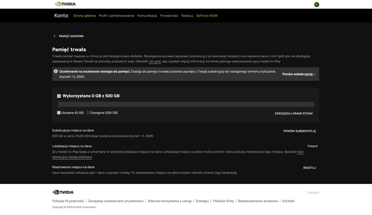 Abonamenty Ultimate i Performance zapewniają użytkownikom 100 GB przestrzeni dyskowej w chmurze, wykorzystywanej do instalacji gier w ramach funkcji Install-to-Play. Dla najbardziej aktywnych graczy NVIDIA oferuje możliwość rozszerzenia tej przestrzeni – można dokupić persistent storage o pojemności 200 GB, 500 GB lub nawet 1 TB, zaczynając od 2,99 USD miesięcznie. Dzięki temu użytkownicy mają pełną swobodę zarządzania swoją biblioteką gier bez potrzeby częstego usuwania i ponownego instalowania tytułów. NVIDIA udostępnia też jednodniowe przepustki, które pozwalają przetestować pełnię możliwości bez abonamentu. To świetne rozwiązanie, jeśli ktoś chce przekonać się do chmury przed inwestycją w nowy komputer.