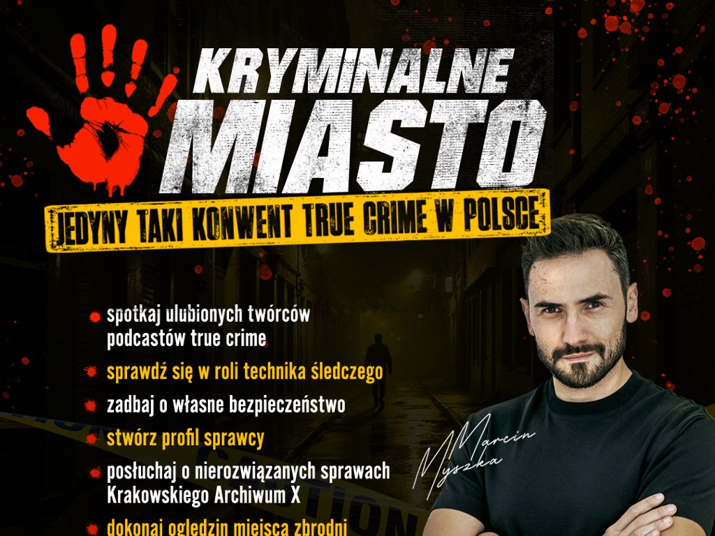Już wkrótce startuje Kryminalne Miasto – wyjątkowy konwent dedykowany fanom prawdziwych zbrodni, a także kryminałom, zagadkom, thrillerom oraz entuzjastom podcastów. To wydarzenie, które łączy świat podcastów, literatury faktu, kina i gier, oferując uczestnikom nie tylko inspirujące spotkania, lecz także immersyjne doświadczenia dla każdego miłośnika mrocznych historii. Co oferuje "Kryminalne Miasto"?
