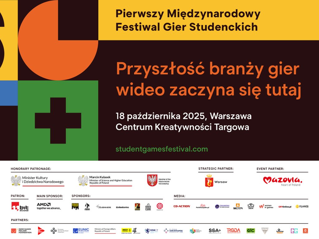 Warszawa stanie się stolicą młodych twórców gier! Student Games Festival już w najbliższą sobotę Student Games Festival 2025 – święto kreatywności, innowacji i przyszłości branży gier wideo w sercu stolicy. 18 października 2025 roku Warszawa zamieni się w centrum młodej kreatywności. W Centrum Kreatywności Targowa odbędzie się Student Games Festival – międzynarodowe wydarzenie poświęcone grom tworzonym przez studentów. Filmweb objął festiwal patronatem medialnym.
