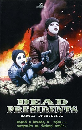 Tzw. "Blaxploitation" to, pokrótce pisząc, nurt w sztuce filmowej oparty na produkcji filmów z czarną obsadą przeznaczonych dla czarnej publiczności, charakterystyczny przede wszystkim dla lat 70. W kolejnych dekadach wspomniany termin stracił nieco na znaczeniu, niemniej różne filmy raz po raz czerpały z gatunku, serwując kino ciężkie tematycznie, ukazujące zmagania Afroamerykanów z trudną sytuacją życiową. Co prawda wydany w 1995 r. film "Martwi prezydenci" oficjalnie nie figuruje na typowej liście obrazów zaliczających się do "Blaxploitation", niemniej rzut oka na fabułę produkcji oraz obsadę pozwala nieśmiało podpiąć opisywany tytuł pod ową kategorię. Obraz braci Hughesów (ostatnio niezła "Księga ocalenia" i rozczarowująca "Władza") jest mało znany szerszej publiczności, zaś telewizja skrzętnie omija "Martwych prezydentów" w swej niezwykle barwnej ramówce. Niemniej dzięki uprzejmości jednego ze znajomych (pozdrawiam!), miałem niekłamaną przyjemność zaznajomić się z recenzowanym filmem na poczciwej i wysłużonej kasecie VHS, z nieocenionym lektorem rzucającym mięsem lepiej niż niejeden rzeźnik po godzinach. Efekt seansu? Dobitnie zaskakujący...