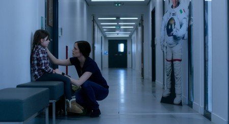 Alice Winocour bierze na warsztat temat macierzyństwa i emocji w kontekście zawodu wymagającego ogromnym wyrzeczeń w sferze prywatnej. Łatwo było wpaść tu w banał, a początkowy zarys postaci drugoplanowych wskazywał na oczywisty rozwój wypadków. Oprócz głównej bohaterki poznajemy amerykańskiego astronautę lubujacego się w szowinistycznych uwagach, byłego męża głównej bohaterki niezbyt zaangażowanego w wychowanie córki czy oschłą urzędniczkę, która ma nadzorować kontakt pomiędzy Sarah i Stellą podczas przygotowań do misji. Już to gdzieś widzieliśmy. Na szczęście dość szybko zyskują oni więcej cech osobowości, unikając zaszufladkowaniu w roli typowych antagonistów w tego rodzaju dramacie.