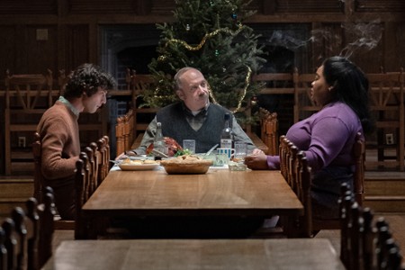 Jednym z tych uczniów jest Angus (Dominic Sessa), 15-letni buntownik, który ma trudności z dostosowaniem się do rygorów szkolnego życia. Początkowo relacja między Hunhamem a Angusem jest pełna napięć i wzajemnej niechęci. W miarę upływu czasu, zaczynają jednak dostrzegać w sobie nawzajem sojuszników, co prowadzi do nieoczekiwanej przyjaźni. Mary (Da'Vine Joy Randolph), ciepła i empatyczna kucharka szkolna, również pozostaje na czas świąt w szkole. Mary zmaga się z osobistymi stratami i smutkami, a jej relacja z Hunhamem i Angusem staje się kluczowa dla rozwoju fabuły.
