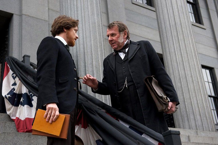 Amerykański twórca z wielkim wyczuciem prowadzi swoich aktorów. Zresztą bądźmy szczerzy – mając taki gwiazdozbiór jakieś specjalne wskazówki były zapewne zbędne. Pierwsze skrzypce gra niezrównany McAvoy. Moralne rozdarcie Fredericka pomiędzy pragnieniem ustalenia prawdy a znajomymi i najbliższymi niechętnie patrzącymi na jego zaangażowanie po niewłaściwej stronie sporu, stanowi niewątpliwie siłę obrazu. Musi on wznieść się ponad zakorzenione w sobie uprzedzenia i wewnętrzną niechęć do swojej klientki, by zrozumieć jej motywy. Doprawdy znakomita rola Szkota. Fakt, że jesteśmy tak zainteresowani tym, co dzieję się na ekranie, to zasługa nie tylko niesamowitego Jamesa, ale i reszty obsady. Doskonała jest wiecznie niedoceniana Robin Wright jako Mary Surratt. Wyciszona, wycofana, dobrze oddająca dylemat, przed jakim stanęła jej postać. Drugi plan również lśni. Bardzo przyjemnym zaskoczeniem jest rola znanego głównie z głupkowatych komedii romantycznych Justina Longa. Warto wspomnieć też o subtelnej Evan Rachel Wood jako córce oskarżonej, niezawodnym Tomie Wilkinsonie, czyli nestorze Fredericka i świetnym Tobym Kebbellu, którzy przewijają się w tle.