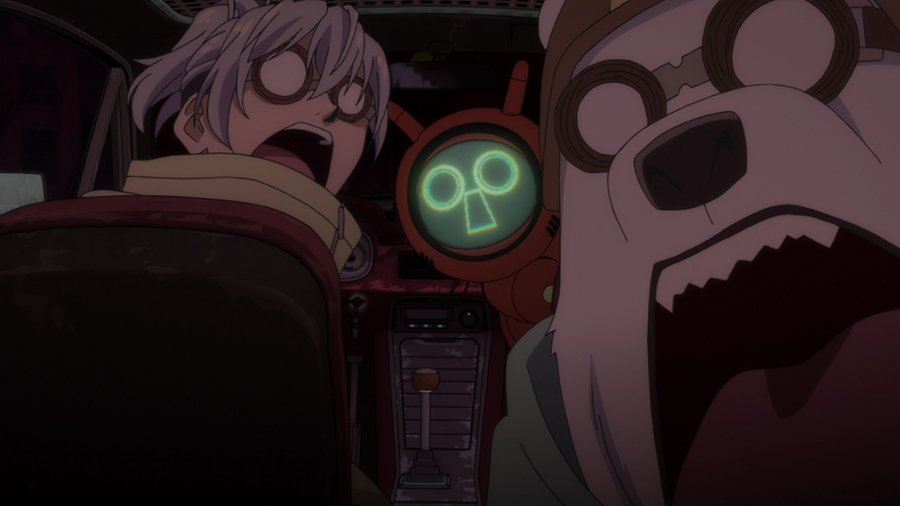 Uciekając przed zabójcami, Gear, Polarny Niedźwiedź i Qu-0213 trafiają do opuszczonego miasta.