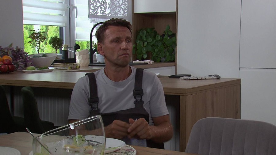 Pies, którego w piątek przyprowadził do domu Jasiek, niestety nie ma czipa. Beata domaga się, żeby zwierzaka odprowadzić do schroniska, ale Jaśkowi i Piotrowi udaje się ją przekonać, żeby poczekał u nich na swojego właściciela jeszcze kilka dni. Borys daje siostrze ultimatum. Jeśli rzeczywiście rezygnuje z udziału w programie telewizyjnym, niech zacznie szukać pracy. Zuza ostatecznie decyduje nie rezygnować z show. Jerzy podczas weekendu był na grzybach w Borach Tucholskich. Tłumaczy Oskarowi, że grzybobranie i praca przy czyszczeniu grzybów go odstresowuje. Do pracy nie idzie, bo czeka na Michała i Franczeskę, którzy dzisiaj wracają z Grecji. Niestety, niczego nowego się nie dowiedzieli na temat Elżbiety. Brajan ma kolejne świetne pomysły nowatorskie. Barbara twierdzi, że marnuje się jego talent komiczny. Brajan bierze jej słowa zupełnie na serio. Marzena w towarzystwie swojego adwokata Bruna oraz najbliższa rodzina Sobola stawiają się u notariusza na odczytaniu testamentu. W pewnym momencie do biura wkracza na czarno ubrana kobieta i twierdzi, że jest żoną Zdzisława Sobola.