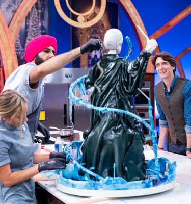 Prowadzący James i Oliver Phelps przydzielają osiem par cukierników do czterech Domów Hogwartu i proszą, aby stworzyli efektowną dekorację.